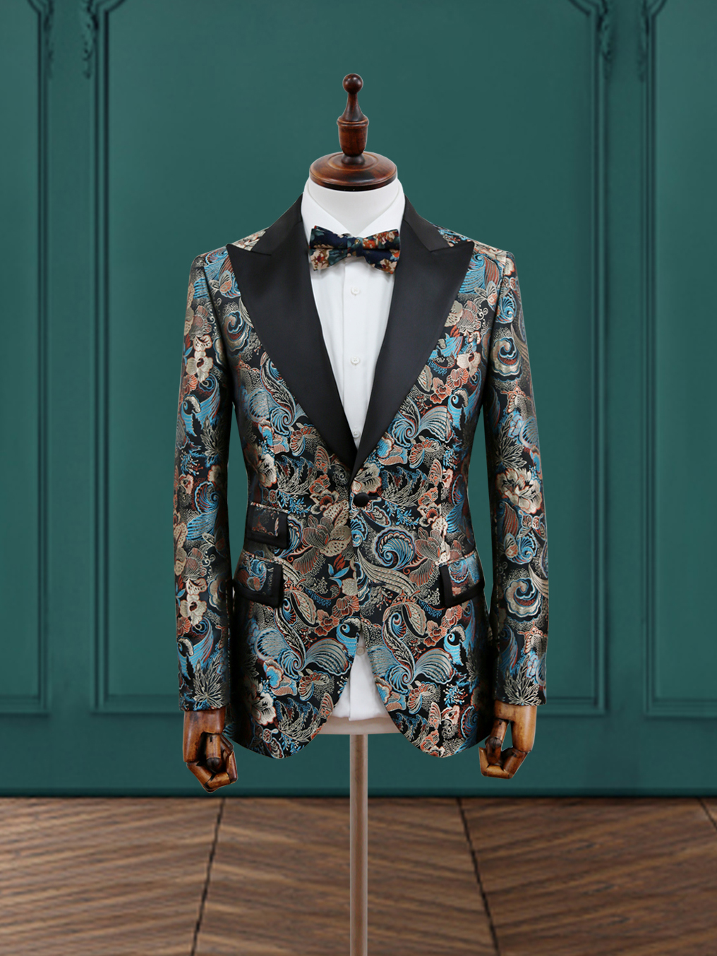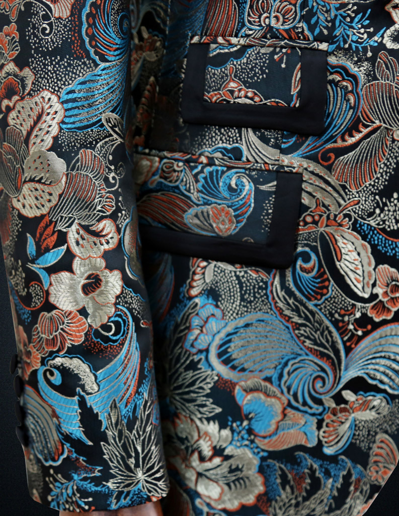 Модерен син жакард костум за господа од мода напред